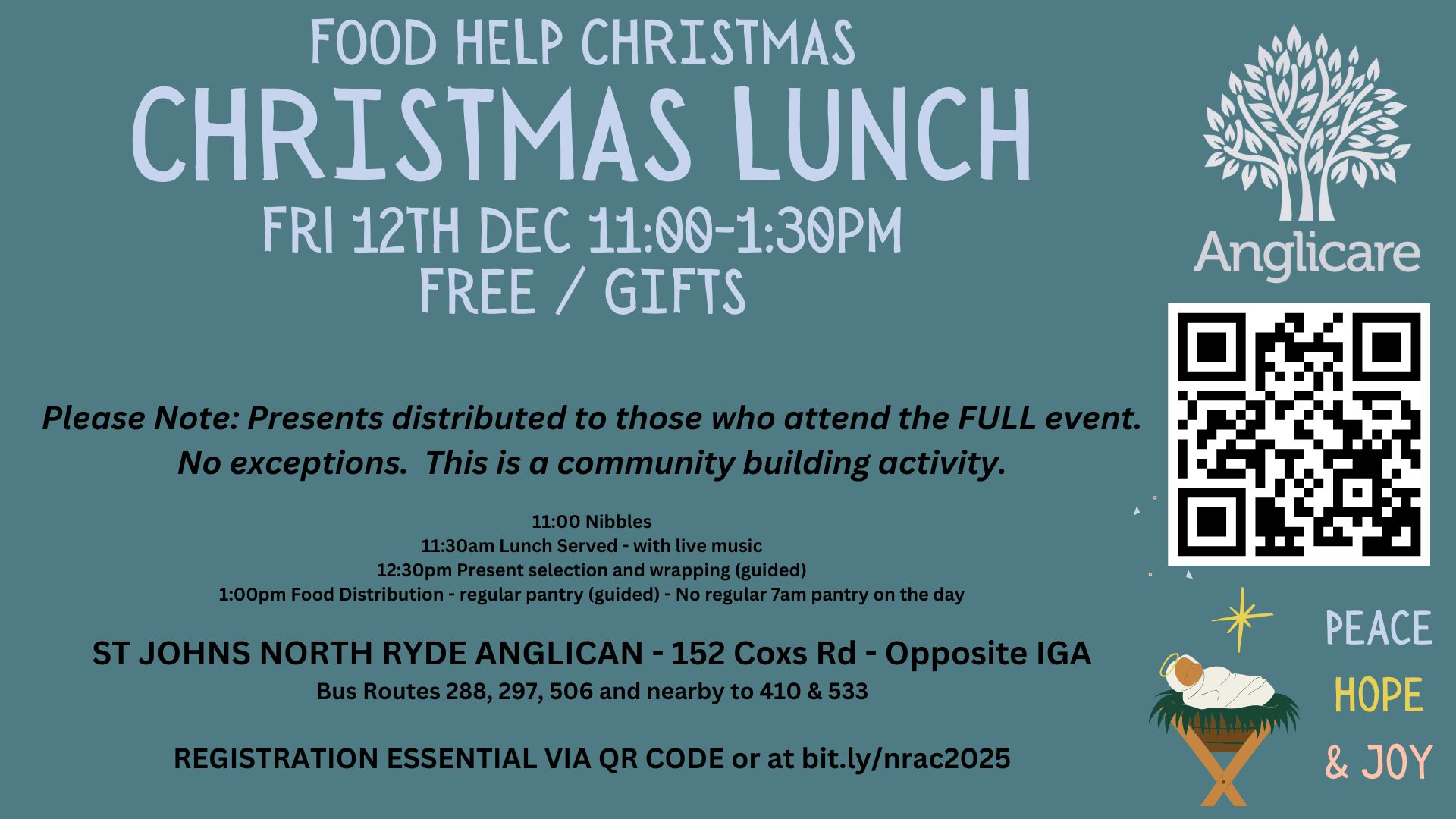Free Registration for Food Help Christmas Lunch 2025 - Fri Dec 12th 11am-1:30pm